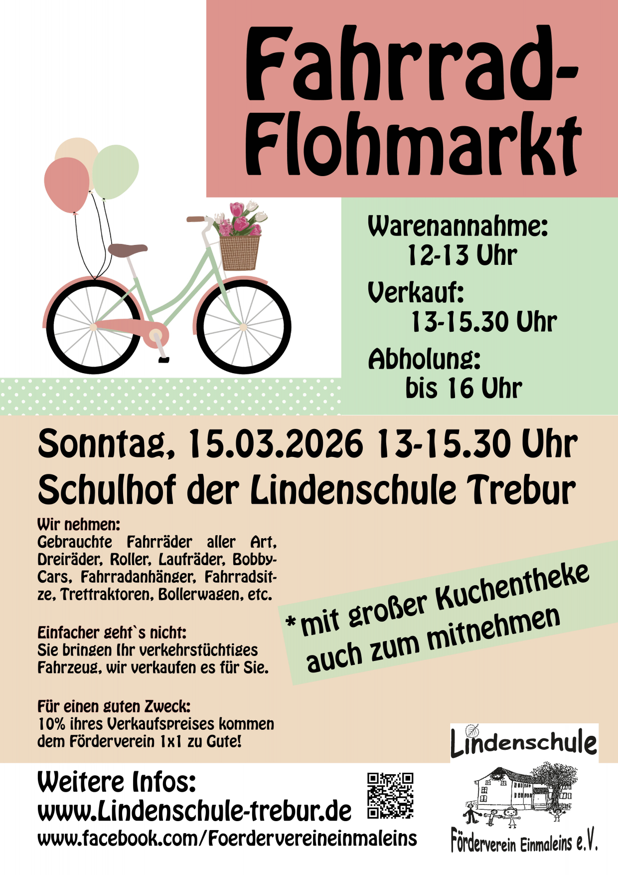 Der nächste Fahrradflohmarkt des Fördervereins der Lindenschule findet am 15. März 2026 im Hof der Lindenschule statt.